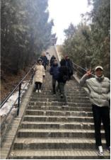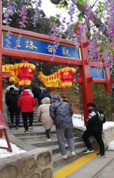 第二天早上9:00點(diǎn),我們團(tuán)體到達(dá)紅螺寺景區(qū),位于北京市懷柔區(qū)城北5公里的紅螺山南麓,距北京市區(qū)55公里,景區(qū)總面積800公頃,國家AAAA級旅游區(qū)。始建于東晉咸康四年(公元338)年,原名“大明寺”(明正統(tǒng)年間易名“護(hù)國資福禪寺”,因紅螺仙女的美妙的傳說,俗稱“紅螺寺”)。紅螺寺坐北朝南,依山勢而建,布局嚴(yán)謹(jǐn),氣勢雄偉?,F(xiàn)在時節(jié)三九,北方冰天雪地,此時攀登由緩緩的山勢而上,身體慢慢散發(fā)熱量,爬到山頂已經(jīng)是大汗淋漓,站在頂端俯視村莊,遠(yuǎn)眺雁西湖畔、懷柔水庫,高矮錯落的房子......心境舒爽。