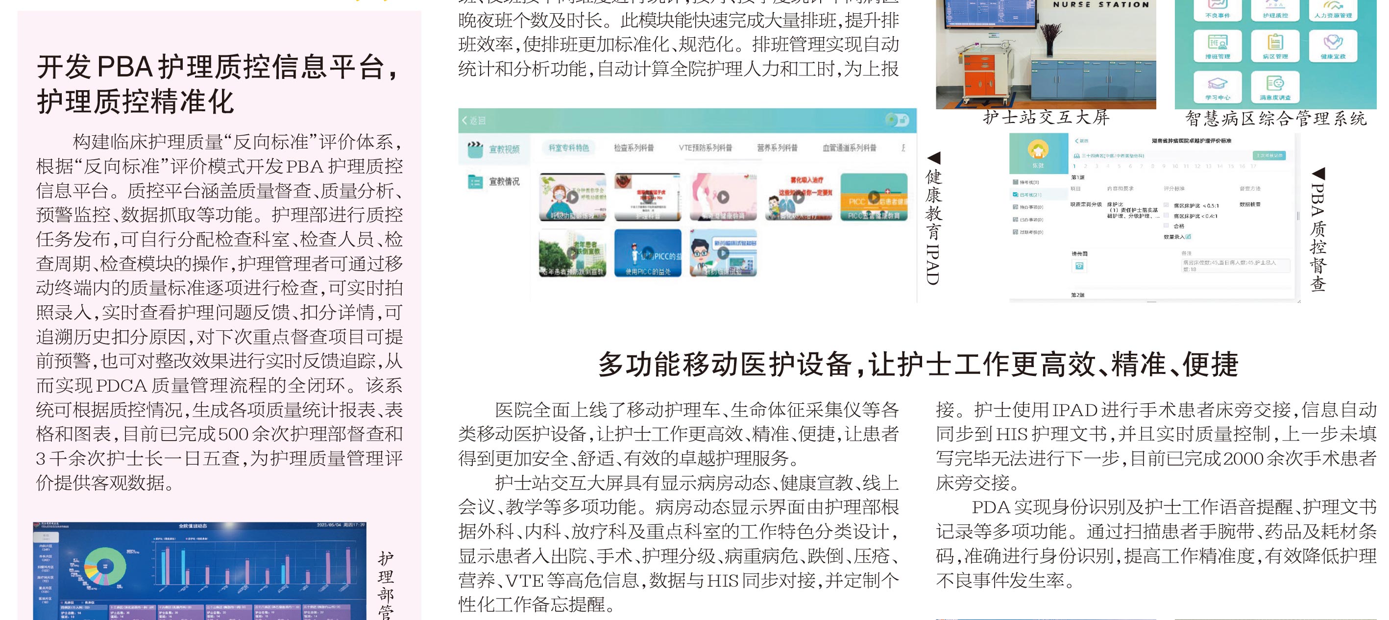 北京天坦智能全面建設(shè)湖南省腫瘤醫(yī)院智慧護(hù)理,從醫(yī)院頂層設(shè)計(jì)制定“智慧病房”建設(shè)項(xiàng)目,深耕細(xì)作開發(fā)出集護(hù)理管理和臨床服務(wù)為一體的智慧病區(qū)綜合管理平臺(tái),為臨床提供便捷、精準(zhǔn)、高效的信息系統(tǒng)支撐,實(shí)現(xiàn)護(hù)理質(zhì)控精準(zhǔn)化、護(hù)理管理數(shù)據(jù)化,促進(jìn)醫(yī)院護(hù)理高質(zhì)量發(fā)展。